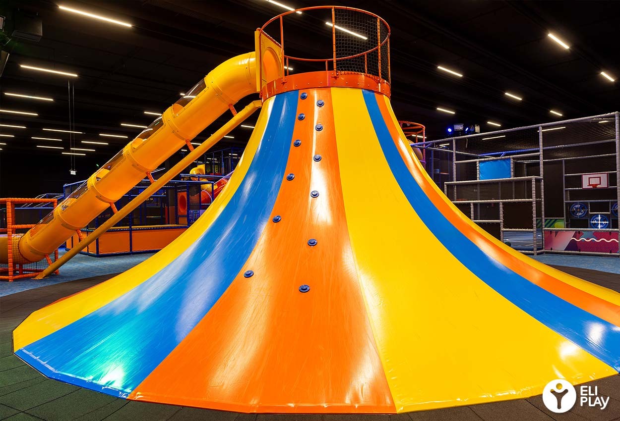 De ELI Play Klimvulkaan is een indrukwekkende attractie. Met een breedte van 17 meter en een minimale hoogte van bijna 4 meter is de vulkaan een attractie die niet te missen is.