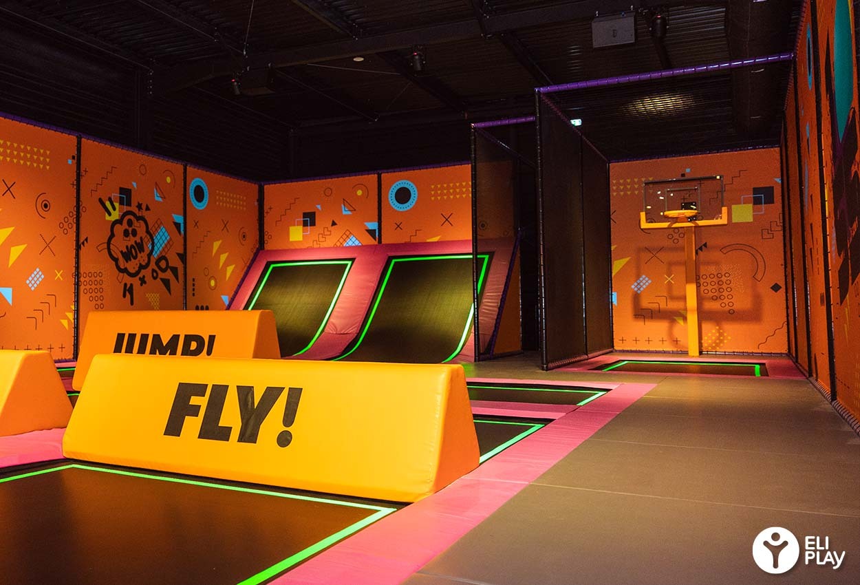 Het springveld bestaat uit velden, gemaakt van een trampolinesheet met een dichte structuur. De veren zijn speciaal ontworpen voor de trampolineparken van ELI Play. De valkussens worden geproduceerd met twee verschillende soorten foam.